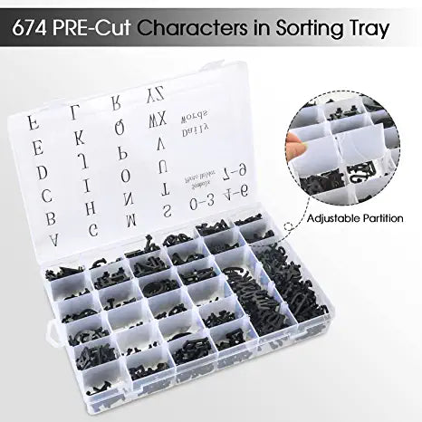 Letter Board Letters, 674 PRE-Cut Characters Letter Organizer Box (3/4 and 1 Inch) with Sorting Tray,Black