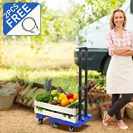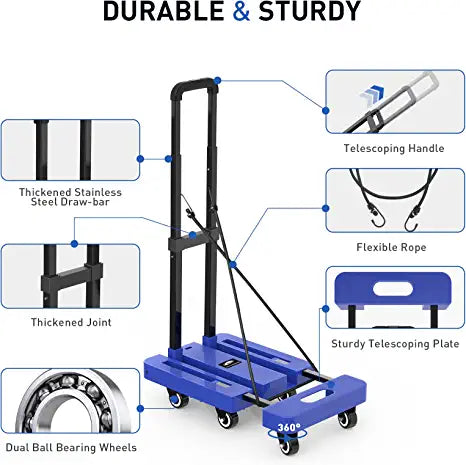 - 【Heavy Duty & Durable】- With 6 upgraded double ball bearing wheels,the utility cart can hold up to 500 lbs capacity with stability and smooth when moving heavy goods. The thickened Steel made drawbar and durable plastic frame make the hand truck not easy to shake when pulling.