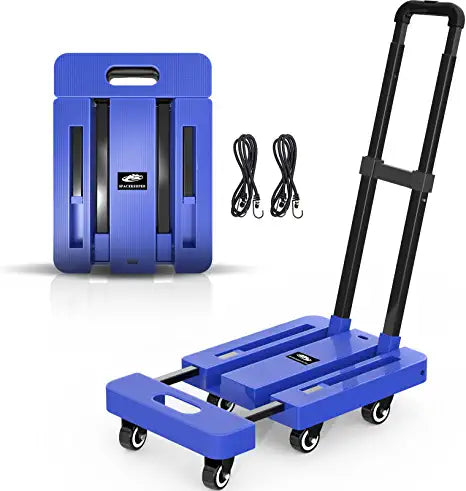 SPACEKEEPER Folding Hand Truck, 500 LB Heavy Duty Luggage Cart, Utility Dolly Platform Cart with 6 Wheels & 2 Elastic Ropes for Luggage, Travel, Moving, Shopping, Office Use,Blue