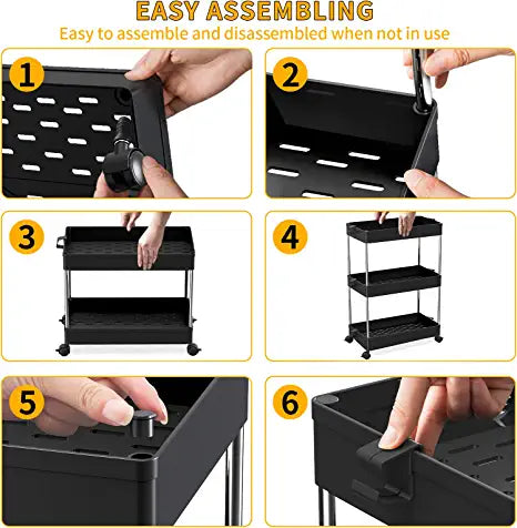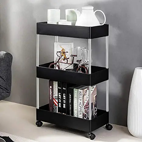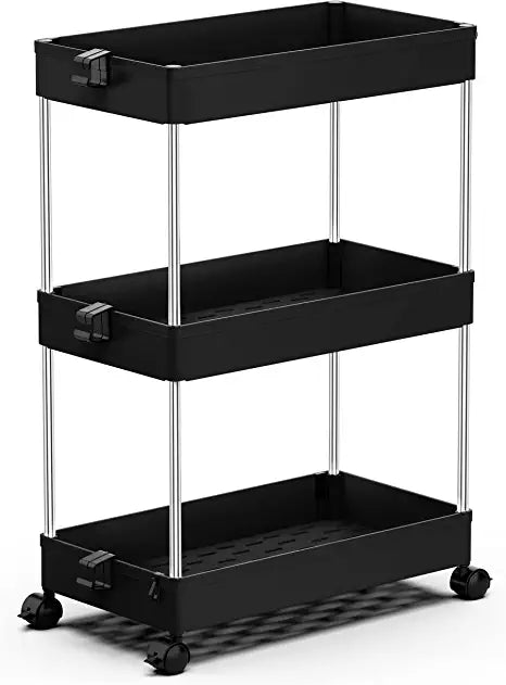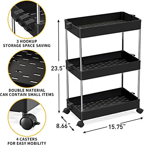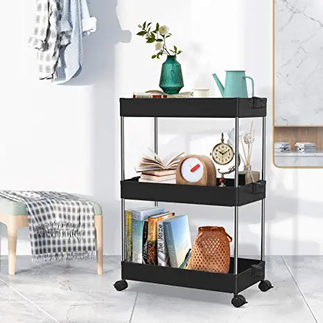 - 【Flexible Storage Cart】- The 3-tier rolling storage utility cart is 8.66 in design which can be used in tight spaces in your home for storage. Suitable for closets, kitchens, bathrooms, garages, laundry rooms, offices.