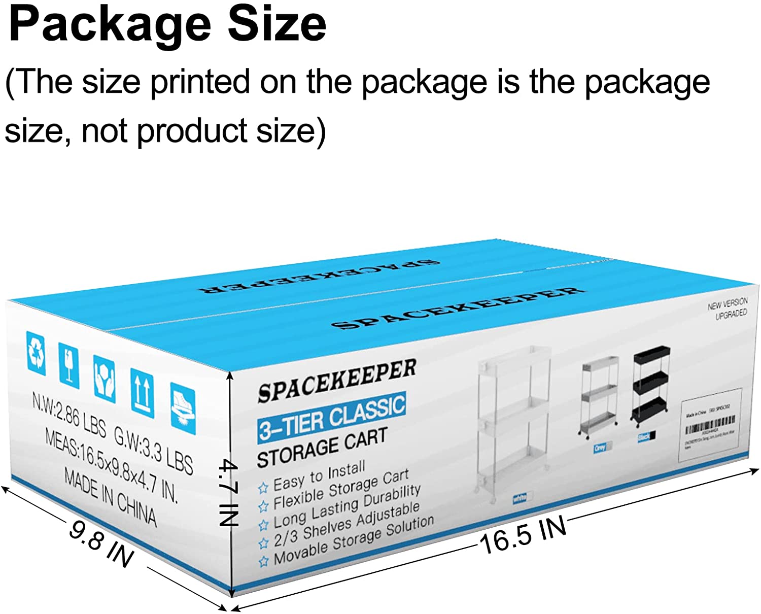 SPACEKEEPER Slim Storage Cart, 3 Tier Organizers Rolling Utility Cart,Mobile Shelving Unit Organizer for Kitchen, Bedroom, Bathroom, Laundry,Black