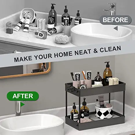 - 【Wide Applications】- The under sink organizer is suitable for closets, kitchens, bathrooms, garages, laundry rooms, offices and many other places