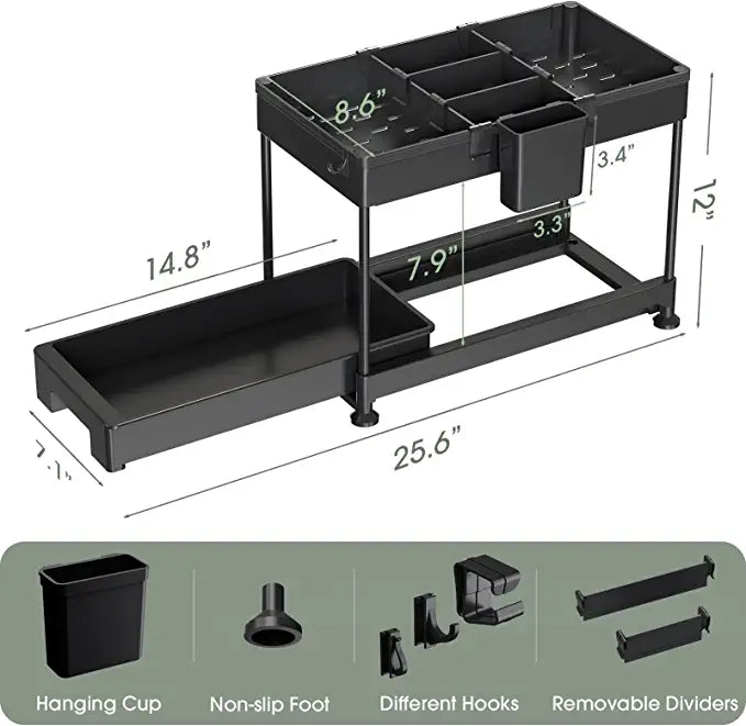 - 【Slide Out Design】- The under sink organizer is designed to be pulled out which is more convenient to use than other normal storage organizers. The bottom slide-out drawer design will make picking and taking more flexible and easier in limited space.