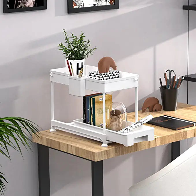 - 【Save Space & Neatly Organized】- This under sliding cabinet organizer can make full use of the cabinet space, like kitchen under sink for cleaning supplies, bathroom under sink for toiletries and so on. Not only maximizes storage space utilization, but also makes the bottles and jars more neat and orderly.